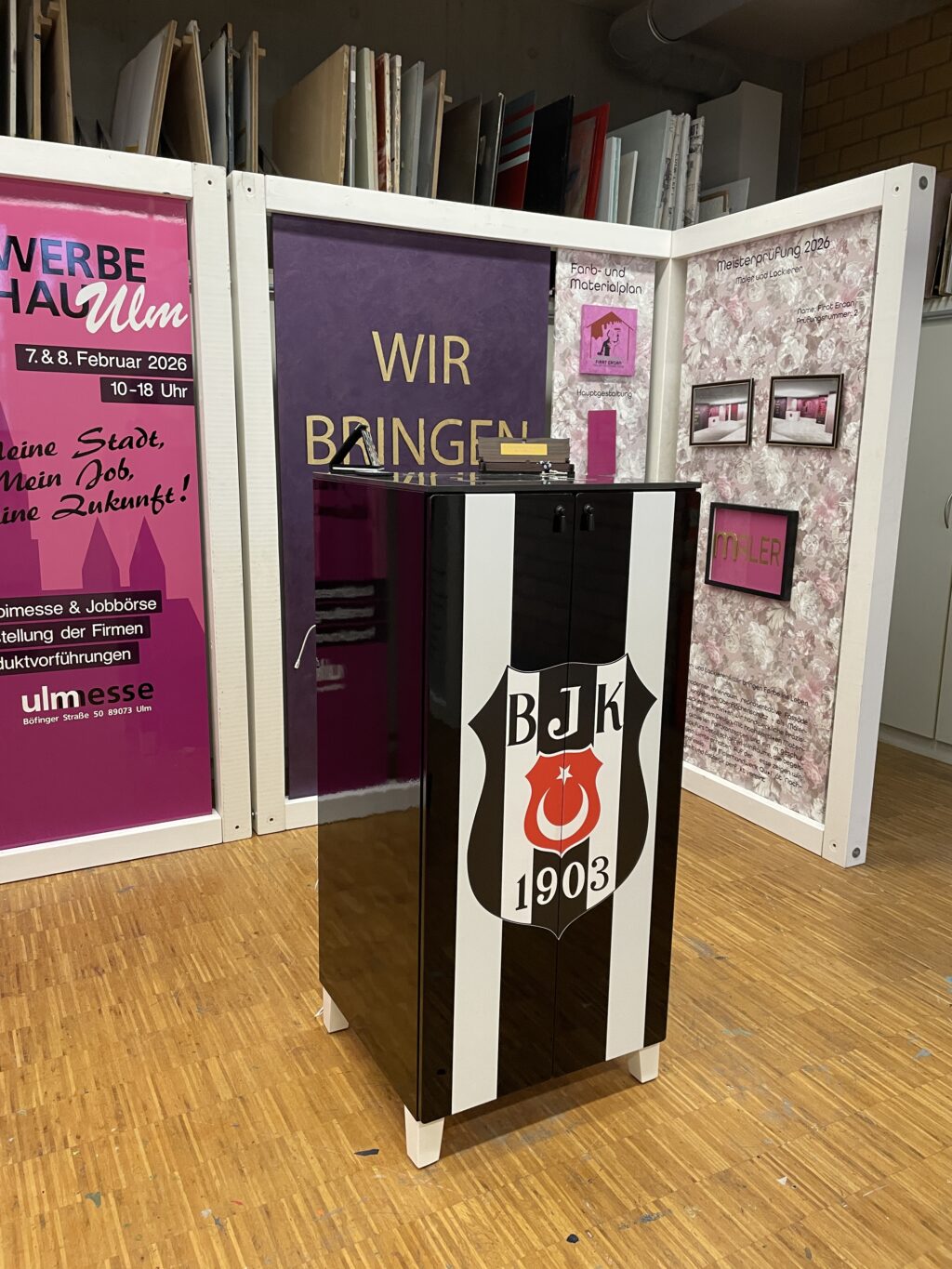 Am vergangenen Samstag fand unsere diesjährige Meisterstückeausstellung der Maler- und Lackierer statt und sie war ein voller Erfolg! Zahlreiche Besucherinnen und Besucher nutzten die Gelegenheit, die kreativen und technisch anspruchsvollen Arbeiten unserer angehenden Meisterinnen und Meister zu bestaunen. Die Ausstellung bot beeindruckende Einblicke in die Vielfalt handwerklicher Gestaltung, von innovativen Farbtechniken über präzise Lackierungsarbeiten bis hin zu ausgefallenen gestalterischen Konzepten. Besonders hervorzuheben sind die Leidenschaft, Professionalität und gestalterische Kreativität, die in jedem einzelnen Werk sichtbar wurden.